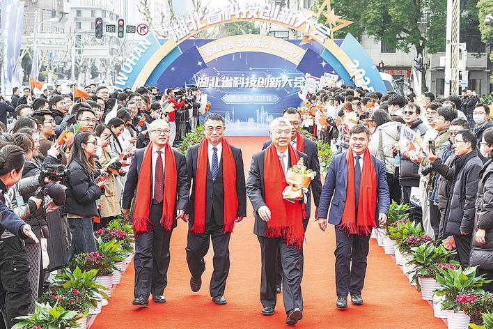 1月6日,新年第一会——2025年湖北省科技立异大会正在洪山会堂举行。我省第六年为科学家铺就百米红毯。正在鲜花的蜂拥下,正在青年科技工做者的掌声和喝彩声中,10位科学家顺次踏上红毯,带着他们的科创走入会场,驱逐荣耀时辰。红毯两侧,由青年科技工做者、大学生、小学生等代表构成的粉丝团,用手中的“应援牌”,驱逐最闪亮的“星”。、李培根、钮新强、周忠胜、梅书棋、定明月、魏翔、陈卫忠、丁文红、肖阳接踵入场,他们存心水铸就的“强实力”,成为湖北高质量成长的“硬支持”。他们中,有的为我国水办理、海绵城市扶植取防洪减灾、严沉水工程办理等做出凸起贡献;有的扎根机械制制及其从动化范畴,帮推我国智能制制范畴财产落地;有的是三峡工程和南水北调工程的设想者;有的发现轻型强防护多用处越野车系列产物;有的成功培育我国首个自有资本育成的优良猪“芯片”;有的帮力我国碳基能源二氧化碳减排改革性手艺的成长;有的为处理世界性“卡脖子”医学难题供给了无效的“中国方案”;有的为我国地下工程挤压大变形和强震动力大变形灾祸防控做出庞大贡献;有的改变了我国大型冷连轧手艺依赖进口的汗青;有的努力于实现焦点配备自从可控,无望达到世界程度。“将科技立异大会做为‘新年第一会’,表白我省对科技立异的注沉。”多位院士、专家不约而同地说,科研人员要对准国度成长计谋和人平易近需求,紧跟科技成长前沿,加速立异程序,将所研发的产物马不停蹄地使用到财产傍边。红毯外,还有千千千万的科技工做者,正以丰满的精气神,为加速打制具有全国影响力的科技立异高地奋怯抢先。2024年,我省捷报频传:存储芯片、心肌旋切等一批手艺打破国外垄断,产出全球首片8英寸薄膜铌酸锂光电集成晶圆、全球首台搭载AI芯片的智能数控系统“华中9型”、全球首款穿戴式头盔全数字PET等一系列标记性;李德仁院士获国度最高科学手艺;武汉科创核心扶植“岛、城、廊、圈”立异空间款式蔚然成型。六铺红毯致敬科学家,是我省服膺习总嘱托,加速打制具有全国影响力的科技立异高地、当好科技策源地的缩影。“湖北要做好水文章。”中国科学院院士说,习总强调,要把修复长江生态摆正在压服性,湖北要抓住这个机缘和挑和,做好流域分析管理。中国工程院院士李培根认为,智能工业软件是国度的严沉需求,“只需我们把握工智能成长的机缘,就可以或许实现工业软件的逾越式成长。”“湖北科创众目睽睽、成就斐然。”中国工程院院士钮新强说,我省要以科技鞭策财产成长,提拔新质出产力成长程度,要将人才劣势转换为科技劣势和财产劣势。钮新强走下红毯时,将手中的鲜花递给了团队里最年轻的王蒂。“钮院士的科研和开创性思维给了我们良多,我们将跟从他的脚步,继续为扶植科创强国贡献力量。”王蒂说。(陈熹、田佩雯、姜胜来)全省科技立异大会上,2024年度湖北省科学手艺揭晓,共授予337项(人)励。这些聪慧取汗水的结晶,记实了湖北科技立异的程序,展示湖北“更好阐扬科技立异策源功能”的底气取斗志,传送出令人的科学家。2024年11月,习总正在湖北调查时,充实必定“湖北科教人才劣势凸起、明白要求湖北“勤奋打制具有全国影响力的科技立异高地,更好阐扬科技立异策源功能”。“策源”,要实现科学新发觉、手艺新发现、财产新标的目的、成长新的“不竭出现”。这正在获项目中获得了充实表现。客岁12月是南水北调东中线周年,沿线亿群众喝上了甜美的“好水”。中国工程院院士、长江设想集团首席科学家钮新强就是这项超等工程的掌管设想者。正在此之前,他仍是三峡工程的次要设想人。立异不止,钮新强率领团队创立了完整的升船机设想、建制理论和手艺系统,实现了升船机提拔总沉从千吨至万吨、提拔高度从数十米至两百米的庞大逾越,引领了世界升船机手艺的成长,无力支持了我国内河航运高质量成长,提出了世界高坝通航中国处理方案。该“大型高扬程升船机成套环节手艺及使用”项目获2024年度湖北省科学手艺前进特等。针对基于天然产品的立异药物研究范畴沉题,历时二十年立异取冲破,发觉了大量布局新鲜活性天然产品,开辟了化学取生物相连系的活性天然产品制备环节手艺。华中科技大学二级传授张怯慧率领团队,基于活性天然产品研发了金线莲苷、“七蕊胃舒胶囊”等一类新药,相关使用到健平易近药业等10余家上市公司,发生了庞大的社会经济效益。该“天然药物化学研究环节手艺取新药创制”项目获2024年度湖北省科学手艺前进特等。光催化材料和手艺是当前国际材料、化学、能源和等多学科范畴的研究热点和前沿,正在处理能源和问题、实现国度“双碳”方针等方面有着很是广漠的使用前景。武汉理工大学余家国传授率领团队正在国际上初次提出了全新的梯型异质结光催化机理,制备出多种高效不变的梯型异质结光催化材料,极大地推进了国际光催化材料的研究取使用化历程。该“梯型异质结光催化材料的设想、制备和使用”项目获湖北省天然科学一等。“尝试室的科研项目系统已全面正轨,正加快成为化合物半导体范畴的全球手艺‘灯塔’”。做为湖北尝试室的代表,湖北九峰山尝试室从任丁琪超正在大会上做交换讲话,他果断地暗示,将取湖北科技范畴的同